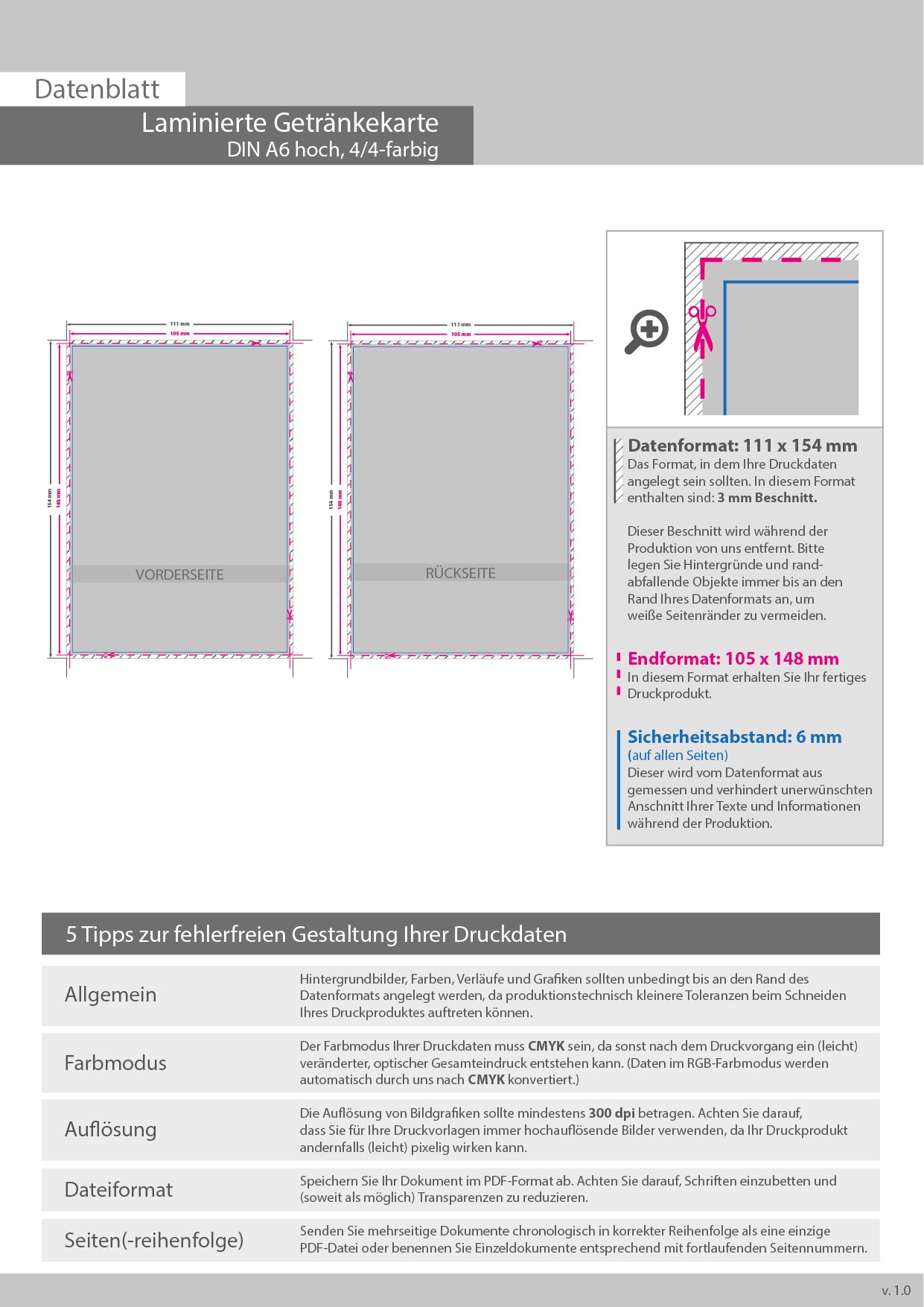 Laminierte Getränkekarte DIN A6 (10,5 cm x 14,8 cm), beidseitig bedruckt